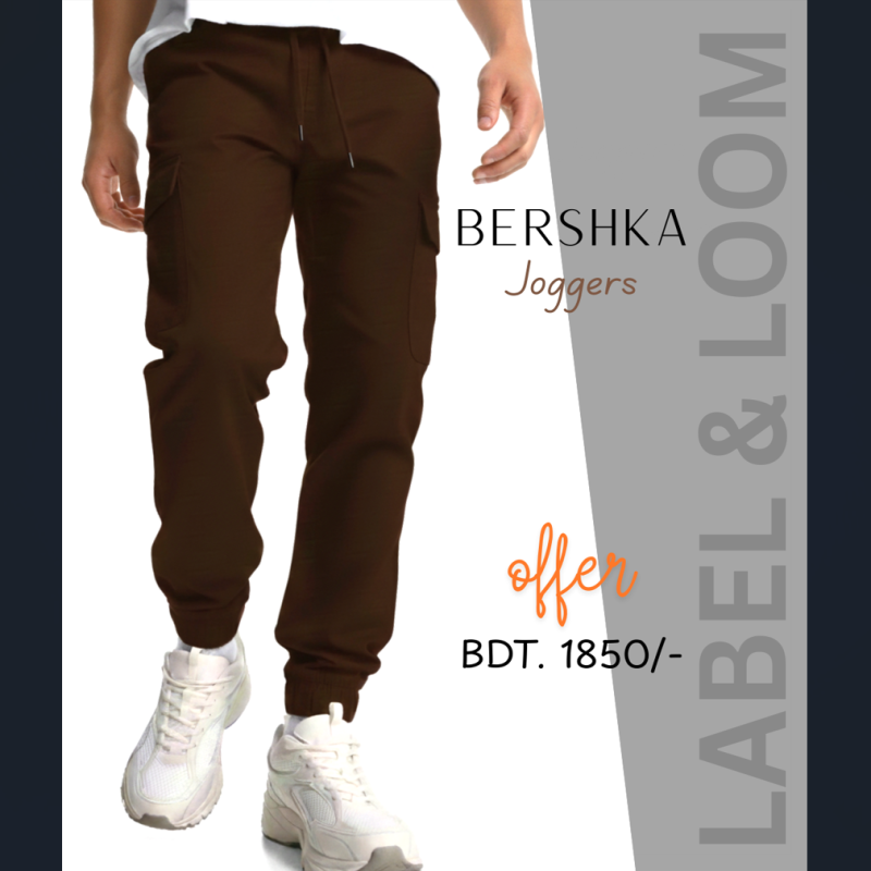BERSHKA Jogger Cargo Size : S, M, L Color : Off White, DK-Coffee